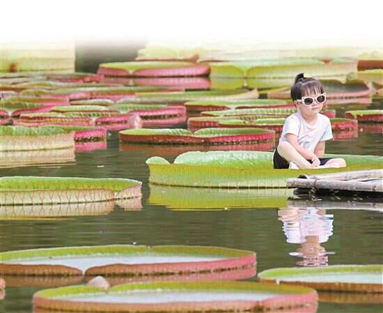 ■7月12日,小朋友在云南省勐腊县的中国科学院西双版纳热带植物园景区体验乘坐王莲。近日,云南各地迎来暑期旅游旺季,各景区景点、乡村户外游客如织,文旅市场消费旺盛。新华社发