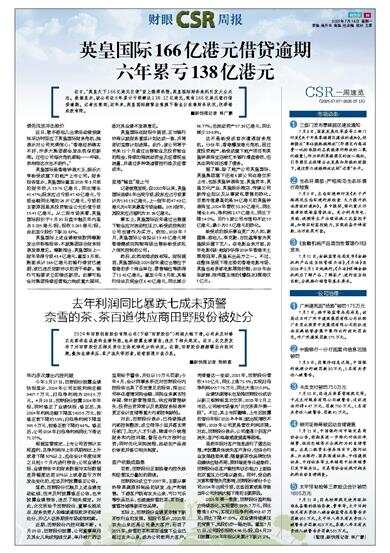英皇国际166亿港元借贷逾期 六年累亏138亿港元