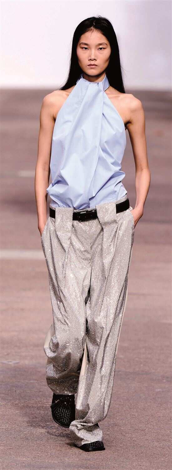 ▲修身款挂脖背心可搭宽松下装,“上紧下松”廓形感,对梨形身材尤为友好。 |