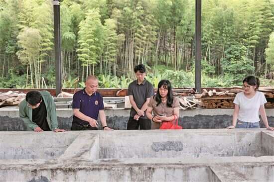 ■白水坑村大量村民每年靠采竹笋增收致富,图为驻寨岗镇工作队到加工点调研。 |