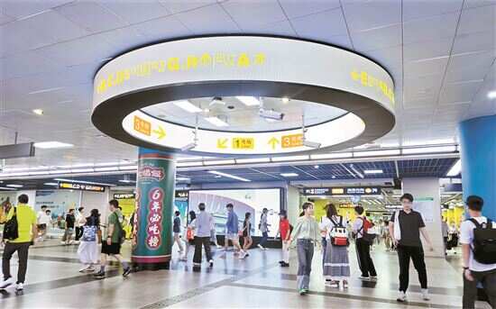 新快报讯 记者李佳文 通讯员胡嘉雯 田春芹报道 近日,广州地铁体育西路站站厅中部天花出现一道引人注目的“光环”,原来这是车站全新上线的环形导向。广州地铁首次上线的环形导向通过内外双环LED屏清晰显示线路方向、换乘信息及出入口指引等,为乘客带来更直观、更醒目的出行引导。 体育西路站环形导向位于一、三号线站厅客流换乘的核心区域,采用内外双环LED导向屏,内环、外环可独立显示。在日常情况下,内环显示屏主要用于发布线路换乘信息,外环显示屏用于发布出入口分布信息。同时具备多种功能,包括导向内容动态变更、信息发布、动画发布等,避免传统静态标识的局限性,使出行引导更精准。 记者了解到,体育西路站作为广州地铁线网车站中的“流量明星”,车站客流常年稳居线网首位。7月暑运以来,体育西路站日均客流44.4万人次,较6月同期增长8%,其中换乘客流日均达33.2万人次。针对乘客问询需求显著增加的需求,环形导向360度环形设计加上高亮度的LED屏,力图让乘客无论从哪个角度均可快速获取清晰、精准的指引,同时也能减少乘客在客流集中区域的停留时间,提升换乘效率。 “以往在客流高峰期,常有乘客问询出入口、换乘路径,如今更清晰的环形LED指引让乘客能够‘自助找路’,车站工作人员能有更多精力投入到秩序维护、帮助特殊乘客等工作中。”广州地铁相关负责人介绍道,“体育西路站毗邻天河体育中心,作为一个临近赛事场馆的车站,环形导向届时也能用于第十五届全运会和残特奥会的信息发布。”