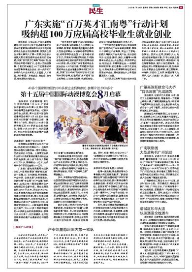 广东实施“百万英才汇南粤”行动计划 吸纳超100万应届高校毕业生就业创业