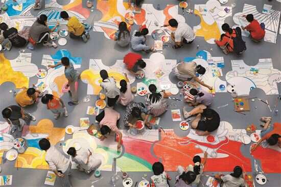■近200名小画家通力合作,完成单幅拼图的绘画创作。 |