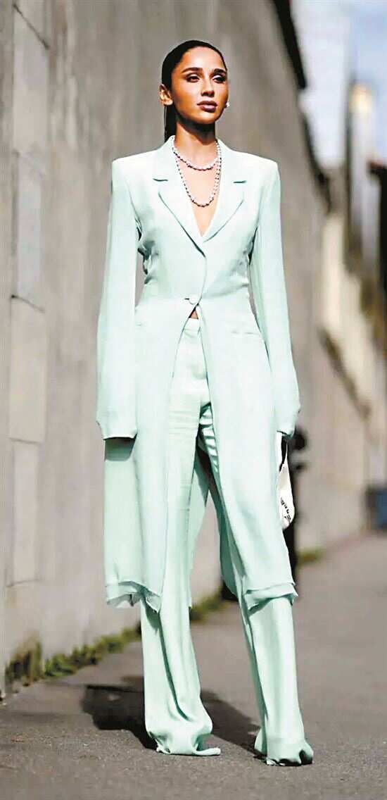 优先选择面料轻薄但垂坠感良好的单品,体现薄荷绿的清新活力,又为造型添随性自在。 |