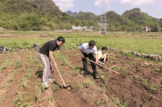 ■2025年4月,郑孟辉(左一)随工作队在山溪村进行马铃薯开挖仪式,助力村集体增收。 |