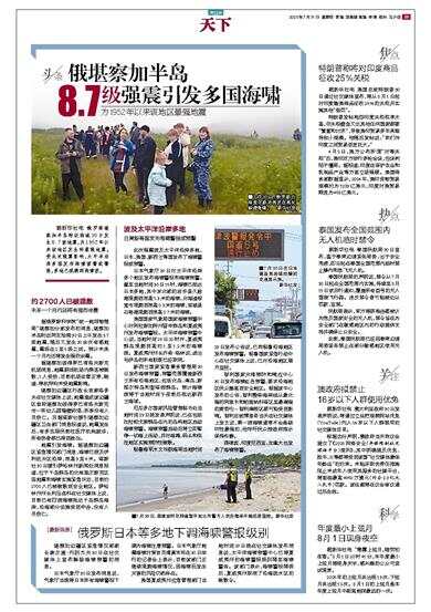 为1952年以来该地区最强地震 据新华社电 俄罗斯堪察加半岛附近海域30日发生8.7级地震,为1952年以来该地区发生的最强地震。受此次强震影响,太平洋沿岸多国发布海啸预警或警报,多地已观