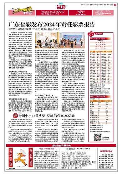去年累计销售福利彩票226亿元,筹集公益金65亿元 新快报讯 记者陆妍思 通讯员莫冠婷 杨端华报道 近日,广东省福利彩票发行中心发布《广东省福利彩票责任彩票报告(2024年)》(以下简称“