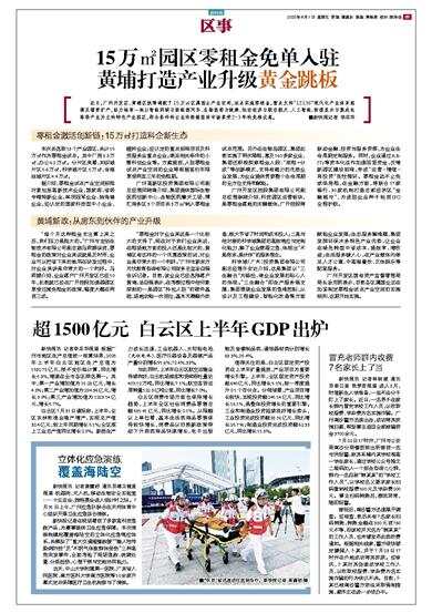 超1500亿元 白云区上半年GDP出炉