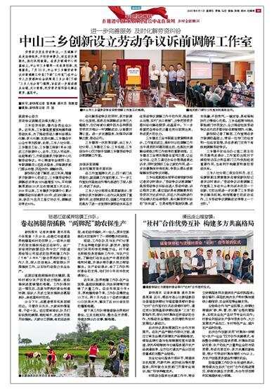进一步完善服务 及时化解劳资纠纷 劳资双方发生劳动争议,一旦调解不成走法律程序,不但劳神费力,而且因为周期长,执行风险较高。在多方联调中心的基础上,中山市三乡镇再一次改革创新、完善服务。7