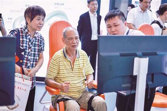 ■第八届中国(广州)国际养老健康产业博览会上,老人体验智慧养老服务。新快报记者 邓迪/摄 |