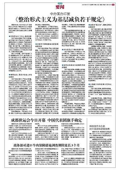 据新华社电 中共中央办公厅、国务院办公厅印发了《整治形式主义为基层减负若干规定》(以下简称《若干规定》),并发出通知,要求各地区各部门认真遵照执行。 ●文件应当开门见山、直奔主题 《