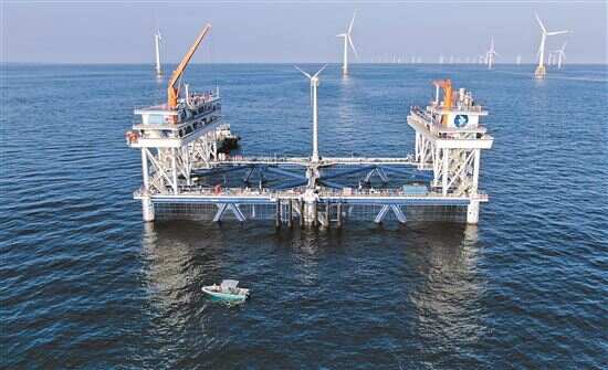 ■位于广东汕尾的中广核“伏羲一号”风渔融合网箱平台(2024年9月2日摄,无人机照片)。 新华社发 |
