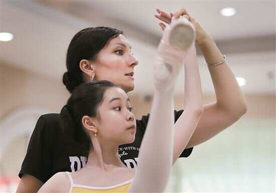 广州天河区一个芭蕾舞房里,木地板被晨光镀上一层薄金,“3、2、1——”杨老师的口令刚落,“啪、啪、啪”的脆响便密集地绽开。那是Frappé的声音,芭蕾里最具生命力的“叩击”——动力腿如被风突然扬起的绸带,在35度角的空中画出转瞬即逝的弧,脚掌轻叩主力腿的刹那,像雨滴落在青瓦,脆响里藏着弹射的力量。十一岁的饭饭立在把杆前,汗水顺着紧实的小腿滑落,身后的女孩们齐齐站成一排,每一寸肌肉的颤抖与紧绷,都是多年光阴在这一刻的凝缩。对饭饭而言,这种弹射的力量不仅藏在肌肉里,更在日复一日的坚持中。饭饭去年考上了俄罗斯瓦岗诺娃芭蕾舞学院,成为这所顶尖芭蕾舞教育学府的第一个中国学生,即便暑假回国,每天三小时的训练她也从未间断。“三天不练,肌肉就会打回原形。” 这个暑假因一位特殊的客人变得不同。来自俄罗斯莫斯科国立舞蹈大学的热尼娅老师,带着芭蕾世界的“纯正”律令而来。她的学生——15位热爱芭蕾的女孩,分别从北京、厦门、南宁、顺德等城市,专程来到广州参加这次为期7天的集训。练功房里,热尼娅用带着口音的中文喊:“1、2、3、4、5……”她的俄式拍子像精确的鼓点,每个动作在节律中被拆解。当然,热尼娅的芭蕾课堂上也少不了饭饭这个小翻译,Plié(普利耶) 、Tendu (汤丢) …… 她会把这些芭蕾舞动作一个一个跟其他女孩们讲解。 热尼娅蹲下身来,用手去一个一个抠动作。芭蕾的门槛并不是无限的瘦,更多的是对技术、力量和舞剧人物的理解。热尼娅的手指如尺规般划过孩子的小腿与脚背,动作毫厘间的偏差都逃不过那双严谨的眼睛:“不,请从头再来。”热尼娅说:“芭蕾的要求就是把每一个动作都标准化地做出来。芭蕾的密码,就藏在这无数次归零重来的忍耐里。” 8月3日在广州举办的福布斯芭蕾舞变奏比赛,成了检验训练成果的舞台。热尼娅端坐评委席,笔尖在纸上飞速记录。当饭饭的裙摆旋起,她的目光依然如教学时般锐利,捕捉着每一个抬腿的角度、每一次Frappé的精准度。赛前,她特意走到后台,拍了拍饭饭的肩:“莫大的演员会拍下自己化妆的短视频,你也应该拍一段,为自己做好记录,以后上台要自己化芭蕾妆。” 大赛落幕,卸下评审身份的热尼娅,转身成了好奇的旅人。热尼娅对中国文化十分感兴趣,这一次广东之旅,她第一站选择了佛山。通过翻译的介绍,她了解到这里是中国功夫的发源地,喜欢上了黄飞鸿、叶问、李小龙。在岭南新天地,热尼娅换上一身帝王绿色的唐装,饶有兴味地研究盘扣、对襟的走向,双手轻轻拂过那丝滑的料子,仿佛在触摸另一种古老而精致的艺术语言。宫廷夜宴的回廊舞台上,热尼娅即兴起舞,芭蕾的挺拔与中国舞的灵动在她身上交融,丝缎裙摆泛着温润的光,与她的欧洲面孔相映成趣。那一刻,语言、文化、国度的边界都消弭了,只剩下舞蹈最本真的快乐。 傍晚的宴席上,热尼娅用筷子夹起一块雕花点心,眼中闪烁着发现的惊喜,每一口都如同探入一个味觉的迷宫。“芭蕾需要这样细腻的文化!”她望着窗外岭南园林的飞檐翘角由衷赞叹。 十四天的教学之旅,从芭蕾教室到岭南园林,她见过训练房里滚落的汗珠,也触摸过东方文化的肌理。离开中国时,热尼娅说:“祝愿中国的孩子在芭蕾之路上,越来越好!”而练功房里,“啪、啪”的声响仍在继续,饭饭和女孩们的足尖,正踩着Frappé的节奏。 Frappé——法语“打击”的原意,在芭蕾的语境里,化作足尖与地面最克制的对话。这动作最磨人的,是它对“细节”的偏执。脚背的高度差一毫米,就失了那份灵动;收回时膝盖多晃半分,身体的稳定便破了功。可也正是这份偏执,让肌肉慢慢长出记忆。