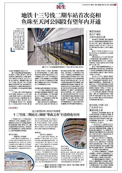 地铁十三号线二期车站首次亮相 鱼珠至天河公园段有望年内开通