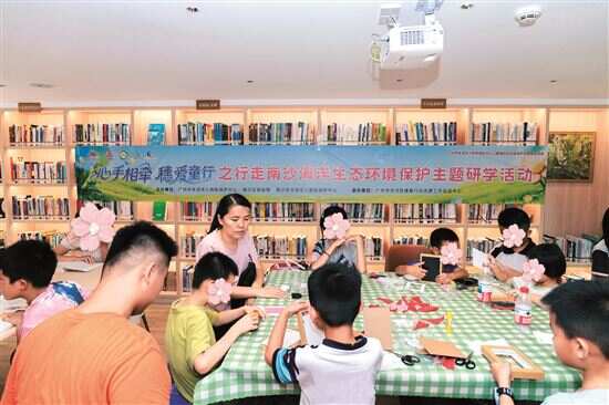 在南沙区研学活动中,孩子们制作装饰布贴画。 |