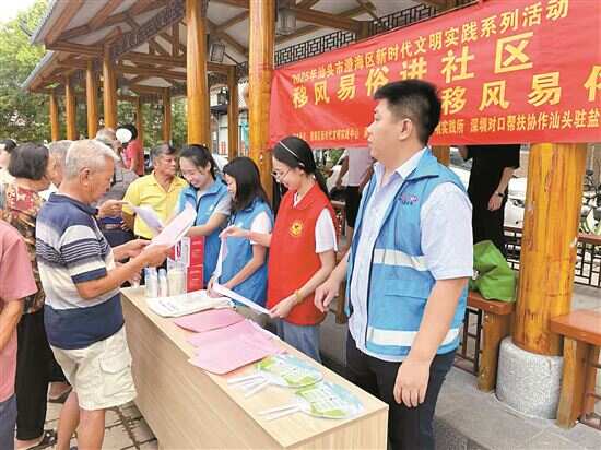 新快报讯 记者方轶报道 近日,汕头市澄海区新时代文明实践中心携手深圳对口帮扶协作汕头驻盐鸿镇工作队(以下简称“驻盐鸿镇工作队”),联合盐鸿镇新时代文明实践所、盐鸿镇妇女联合会、盐鸿镇公共服务办公室、盐鸿镇港头社区新时代文明实践站,在港头社区大池举行“移风易俗进社区 文明新风润民心——移风易俗主题活动”,旨在融合政策宣讲与互动体验,以群众喜闻乐见的形式推广移风易俗。 在活动的宣传服务摊位上,驻盐鸿镇工作队及相关部门组织志愿者向周边居民、商户发放移风易俗倡议书,并结合周边陈设易拉宝等宣传设施,面对面地为群众讲解移风易俗“十抵制、十提倡”的主要内容,号召引导群众在日常生活中自觉践行村规民约,自觉抵制婚丧铺张浪费、大操大办等不良风气陋习,共同树立文明生活新观念。 活动现场还安排了趣味有奖问答与群众互动。知识问答涵盖婚俗改革、丧葬习俗、节日新风、生活习惯、综合知识等五个内容模块。群众回答问题可以获得移风易俗主题扇子、环保帆布袋、“文明盐鸿”咖啡杯等礼品,进一步加深了对“婚事新办”“厚养薄葬”“绿色殡葬”“文明祭扫”等理念的理解,将“移风易俗”观念内化于心、外化于行。 驻盐鸿镇工作队表示,接下来,将继续创新工作形式,进一步普及深化移风易俗宣传工作,促进文明新风理念在镇村落地生根,从行为规范转变为文化认同,以文明风尚激活城乡治理新动能。