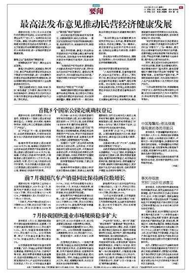 据新华社电 今年5月20日正式施行的民营经济促进法,以法治护航让民营企业吃下“定心丸”。法律的生命力在于实施。最高人民法院日前发布关于贯彻落实民营经济促进法的指导意见,从五方面提出司法保障民营经