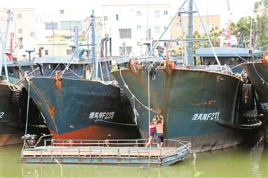 ■8月13日,广东汕头澄海区渔民固定渔船备战台风。新华社发 |