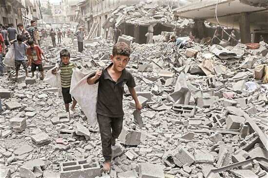 ▲8月8日,孩子们在加沙城以军袭击后的废墟上搬运物品。 |