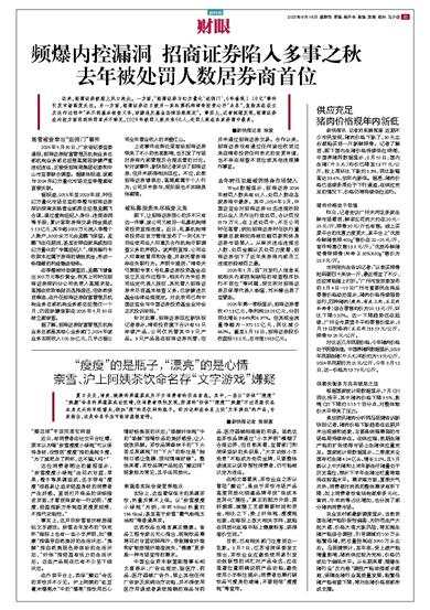 频爆内控漏洞 招商证券陷入多事之秋 去年被处罚人数居券商首位