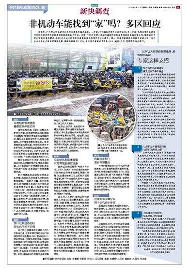 近些年,广州街头的电动自行车和共享单车越来越多。一方面,它们确实方便了大家的出行;另一方面,扎堆出现的电动自行车和共享单车停放给原有的秩序造成了冲击。日前,广州对市管八条城市道路的非机动车停放区实施划线工作,较好满足了周边市民的停车需求,然而,不少地方的停车位数量和停车秩序仍待优化提升。那么,其他仍然拥挤的道路还有潜力吗?有什么办法能让大家舒舒服服走路、规规矩矩停车?对此,新快报记者采访了海珠、白云、越秀、天河、荔湾等区有关部门。 海珠 采取相关整改措施 腾挪更多停放空间 海珠区有关部门回应,在整治共享单车方面,区城管和执法局积极配合主管部门做好共享单车企业提醒约谈,督促企业落实主体责任,加强巡查调度,及时清理规整乱停乱放。指导属地街道加强巡查,对发现共享单车淤积问题,及时督促企业清理,对相关违法行为进行查处。2025年以来,督促共享单车企业规整清理共享单车110183辆,开出责令限改通知书15份。 整治电动自行车方面,指导各街道综合执法力量加强对乱摆卖占道经营、占用电动自行车停放区域的违法行为进行执法,给电动自行车停放腾挪空间。 针对瑞康路电动自行车停放杂乱问题,海珠区凤阳街道也采取相关整改措施:一是联合交警、派出所等部门,待地铁施工完成后优化非机动车道和停放区设置;二是落实市场“门前三包”,规范停车位划线,高峰时段安排专人引导;三是设立交通整治劝导点,常态化整治违停、无牌、不戴头盔等行为;四是增设提示牌,加强巡查清理违停车辆。同时也呼吁市民朋友要自觉遵守交通规则,有序停放电动自行车,骑行时佩戴头盔,不占用消防通道,共同维护安全、畅通的出行环境。 白云 预计近期启动招标 活化利用桥下空间 白云区住房建设和交通局工作人员告诉记者,今年该局正推动地铁口环境秩序的综合整治,针对重点地铁口,将会同街道一起做系统的方案,包括线路的规划、硬件设施的完善、日常动态的管理。“因为电动自行车的运行都是独立个体,需要一个阶段或一段时间的规范,才能促使市民逐步养成好的习惯。此外,道路红线外的地方是有权属单位的,也需要协调大家来挖掘空间。”该工作人员表示。 他指出,近几年,电动自行车爆发式增长,原有道路本身没有提前规划,所以造成现有设施不能满足非机动车停放需求的矛盾。他透露,白云区刚刚把公共道路范围内的桥下空间摸查完,目前正在规划评估,将这些空间资源利用起来,或设置机动车与非机动车的停车场,或改造为文化体验空间,预计近期可以启动招标。 越秀 立即派员到现场查看 规范清理乱停放现象 越秀区交通运输局(越秀区商务局)工作人员表示,针对记者反映的东川路非机动车停放密集阻碍通行问题,区交通运输部门已立即派员到现场查看,第一时间督促共享单车企业清理超线框停放车辆,后续将组织属地街道在现有停放区基础上进一步挖潜增密、完善指引,督促运营企业高峰时段驻点规整、加强清理,改善停放秩序、保障人行畅通。 该工作人员表示,越秀区结合老城区工作实际,通过聚焦重点、试点示范、创新管理、应划尽划等措施改善停放环境,便利群众出行。选取烈士陵园地铁站D口、纪念堂地铁站C口作为重点整治试点,建立由属地街道牵头,地铁、城管、公安、交警等部门共同参与的站地联动管理机制,因地制宜、分类设置电动自行车停放区、共享单车停放区,配套完善停放指引、隔离护栏等基础设施,督促共享单车企业驻点规整,联合执法部门对无号牌电动车等定期开展清理整治,取得良好整治效果。此外,积极组织各街道对道路两侧非机动车停放区开展查漏补缺、应划尽划,针对中心城区道路狭窄、盲道间隔问题,通过斜向、弧线等多种布局模式因地制宜优化标线设置,尽可能增加停车供给。 天河 将联合多部门 逐步开展整治 针对东圃地铁站B口非机动车违规停放、占用盲道和机动车道等问题,天河区交通运输局交管站工作人员回复新快报记者,接下来将逐步开展整治,联合交管部门、属地街道、城管部门规范非机动车停放秩序,清理挪移无牌非机动车,并将有牌非机动车停放至停车区域,同时也会加强宣传,提醒市民规范停车。 荔湾 合理利用闲置空间 用于非机动车停放 荔湾区住房建设和园林局表示,按照职责分工,结合历史文化街区保护活化利用项目,近年来,已在康王中路、中山八路和多宝路增设和改造非机动车道8.3公里,保障非机动车通行条件。 在荔湾区北片,将非机动车道建设纳入历史文化街区保护活化利用项目范围重点推进,计划完成45条道路改造,目前已完成36条改造。在荔湾区南片,对未全面实施改造的城中村和社区进行环境综合整治,计划完成66条道路改造,目前已完成51条改造。应街道需求,积极协调市道路事务中心等单位,利用桥下空间、中间绿化带、安全岛设施带等闲置空间用于非机动车停放,交由属地街道管理。 如何让大家舒舒服服走路、规规矩矩停车? 专家这样支招 1 加大非机动车道建设 探索立体式停车服务 广东省电动车商会执行会长蓝世有认为,近几年,广东电动自行车社会保有量呈现几何倍增长趋势。从社会发展的角度来看,广东的基础设施,无论是非机动车道,还是非机动车停放场所,都没有跟上发展的态势。 “这不仅是时代发展的需求,也是群众的实际