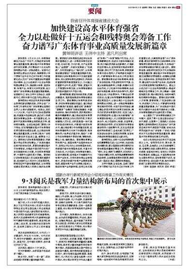 加快建设高水平体育强省 全力以赴做好十五运会和残特奥会筹备工作 奋力谱写广东体育事业高质量发展新篇章