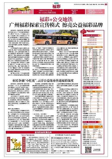 新快报讯 记者陆妍思 通讯员郭新庆报道 近日,广州市福利彩票发行中心携手广州公交、广州地铁,在14路、180路等19条公交线路以及广州塔、体育西路等29个地铁站点投放公益广告,利用公共交通特有的