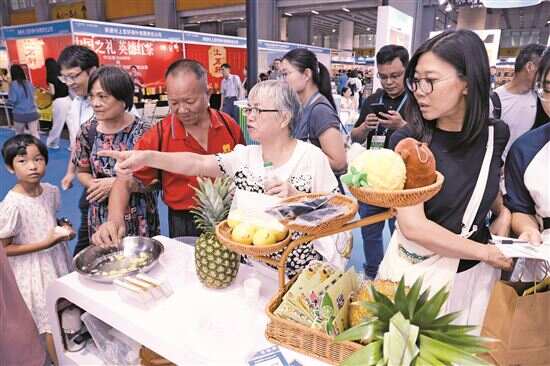 ■“百千万工程”暨乡村振兴展区汇聚了全国各地名优农产品,吸引参展群众纷纷试吃。 |