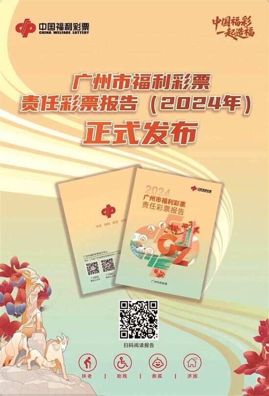 《广州市福利彩票责任彩票报告(2024年)》发布 近日,广州市民政局发布《广州市福利彩票责任彩票报告(2024年)》(下称《报告》),向社会公众报告2024年度广州市福利彩票发行销售和责任彩票建设情况。 《广州市福利彩票责任彩票报告(2024年)》是广州市连续发布的第六份年度福利彩票责任彩票报告。《报告》分为“党的建设情况”“公益金使用管理情况”“发行销售情况”三大篇章,通过翔实的数据和丰富的事例,全面展现了过去一年广州福彩在党建引领、公益实践、规范管理、市场发展、责任建设等方面的工作成效。《报告》显示,2024年,广州福彩全年销售福利彩票42.5亿元,筹集公益金11.94亿元,缴纳税收近1亿元,提供就业岗位超5000个,交出了一份令人满意的答卷。 ■新快报记者 陆妍思 通讯员 郭新庆 坚守使命 温暖云山珠水 《报告》收录了广州市民政局发布的《广州市2024年度福利彩票公益金使用管理情况》的主要内容。2024年,广州共投入福利彩票公益金4.63亿元,用于资助面向老年人、残疾人、儿童等群体的社会福利项目以及其他符合福彩发行宗旨的社会公益项目。 其中,用于老年人福利事业的公益金达2.94亿元,占比63.5%。《报告》详细列出福彩公益金资助的各类服务类、工程类、设备购置类项目,并重点展示了“助餐配餐服务”“社会组织公益创投”“平安通”优秀福彩公益金项目。“长者饭堂”项目围绕解决老年人最关心、最直接、最现实的就餐需求,让老年人群体尽享幸福“食”光;“社会组织公益创投”项目有效动员社会组织深层次参与公益服务,让社会组织在创新基层社会治理中更好发挥作用;“平安通”项目为居家老年人提供紧急呼援、心理慰藉、健康监测、智慧医疗等多项服务,是老年人贴心的全天候“守护者”…… 此外,广州福彩坚守公益初心,积极投身公益事业,连续十余年支持开展“微心愿”“乐善行”等一系列有温度的公益慈善项目,用实际行动兜底民生底线、增进民生福祉。 规范管理 彰显责任担当 2024年,广州福彩坚持“安全运行 健康发展”工作方针,统筹高质量发展和高水平安全,扎实做好渠道拓展、营销宣传、品牌建设、内部控制以及队伍建设等工作,守牢合规营运底线。持续优化渠道布局,构建多元渠道融合发展新格局;强化统筹联动营销,激发市场新活力;加强内部控制和技术支撑,夯实安全保障;做好代销者培训工作,提升从业人员专业技能和责任意识。 《报告》显示,广州福彩严格落实《中华人民共和国未成年人保护法》《彩票管理条例》等法律规章要求,高度重视购彩者和未成年人权益保护,如不在学校周围设立销售网点、销售网点必须在醒目位置张贴警示标语、在地铁和公交投放“理性购彩 量力而行”“未成年人不得购彩和兑奖”公益宣传片,切实履行保障购彩者和未成年人权益的行业责任。 据了解,《报告》本次继续以电子版和纸质版两种形式同步发布,市民可登录广州市民政局公众网或广州福彩微信号查看电子版报告,也可前往附近的福彩销售场所查阅纸质版报告。