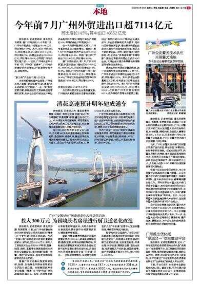 同比增长14.5%;其中出口4665.2亿元 新快报讯 记者麦婉诗 通讯员关悦报道 据广州海关统计,今年前7月,广州市外贸进出口总值达7114.6亿元,同比增长14.5%。其中,出口466