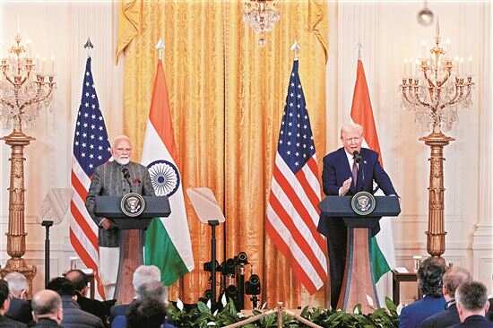■2月13日,美国总统特朗普(右)与到访的印度总理莫迪在华盛顿白宫出席联合记者会。新华社资料图 |