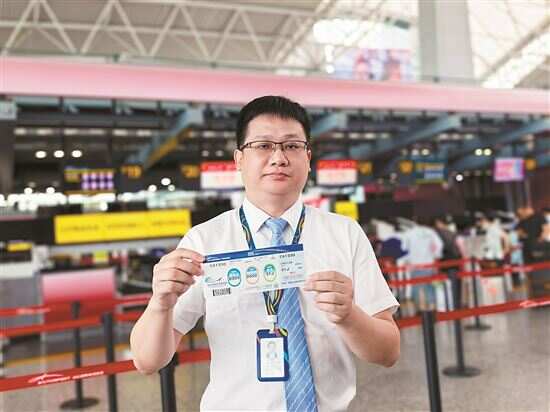 ■白云机场新版“三色舷窗”登机牌启用。新快报记者 毕志毅/摄 |
