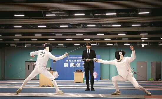 击剑测试赛 现代五项击剑项目比赛中。8月20日—8月21日,第十五届全国运动会现代五项测试赛在广东省黄村体育训练中心举办。本次比赛是黄村体育训练中心完成升级改造后的首场赛事。 |