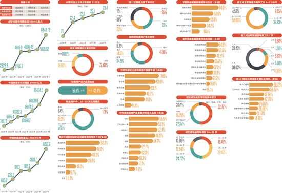 2 用户对价格不是太敏感 方便和安全是首要考量 当前我国的物流行业竞争非常激烈,按照业务模式划分为直营型和加盟型。其中中国邮政、顺丰等为直营型,中通、圆通、韵达等为加盟型。 按照资金来源的不同,可以分为国有快递公司、民营快递公司和外国快递公司。 根据其所处的位置,可以将其划分为三类:一类是邮政、顺丰等,它们采取的是自营的方式,产品的品质和品牌效应高,主要针对的是中、高档人群,具有很强的时效性,因此价格比较高;二类是中通、圆通、汇通和韵达等民营快递公司,他们采取了加盟经营的方式,针对的是中、低消费群体,具有更高的性价比,成为了当前中低端快递行业的主力;三类是通过差异化服务的小规模快递公司。 对于消费者来说,数据显示,普通快递(53.3%)和同城配送(48.1%)是最常用的物流方式,紧随其后的是时效快递、冷链物流、国际快递和仓配服务。下单快递服务方面,支付宝是最主要入口,占据25%,其次是App和微信小程序,各占据23%。 有44.6%的快递用户表示自己每天都需要使用快递服务,表示经常使用的也有34.6%。对于这些用户来说,选择一家公司的快递服务,首要考量是方便快速(70.6%)和安全性(63.6%),然后是服务态度(53.1%)和品牌信誉(43.7%),而价格在诸多考量因素中仅仅以41.0%位列第五。 改善服务态度(54.9%)是用户对快递公司的最主要诉求,紧接的是提高寄件速度(52.8%)、保障货物安全(42.5%)、增加服务网点(35.2%)和提高自身设备条件(32.2%),降低服务费用(30.1%)排在第六位。 对于快递员,用户们最看重的是守时(55.5%)、工作态度认真(53.1%)、有责任心(52.4%)和保密(48.5%)。智能快递柜是最多用户偏好的快递接收方式(64.5%),紧接着是便利店代收处和快递驿站。 3 “量价倒挂”致恶性循环 挤压从业人员生存空间 快递行业同时面临长期的激烈竞争和因此带来的一系列危机。据公开资料显示,一直以来,快递公司“低价换量”的竞争策略早已成为行业常态,即便业务量持续增长,利润空间却未同步提升。 分析认为,要实现高质量发展,快递公司首先需明确自身的责任主体地位,主动摒弃导致行业恶性循环、“伤人伤己”的低价竞争策略,将精力聚焦于业务运营优化、运力系统升级、服务模式创新等核心领域,用“真功夫”打破同质化困局,推动行业从“价格战”转向“价值战”。 据国家邮政局数据,2025年上半年全国快递业务量累计完成956.4亿件,同比增长19.3%,呈现出显著的增长态势。但与之形成反差的是,多家快递公司上半年经营数据显示,快递单票收入逐月下降,且已有不少企业跌破2元大关,“增量不增收”的矛盾愈发突出。 这种矛盾在快递业务密集区域表现得更为明显。招商证券数据显示,2025年7月,广东实现快递业务收入254亿元,同比减少0.7%;完成快递业务量41.0亿件,同比增长12.2%;快递业务单票收入为6.20元,同比减少11.5%,环比减少1.3%。 长期高度同质化竞争导致价格战,已将当地快递市场的价格与利润空间压缩至接近极限,行业陷入“为抢订单而压价,因压价而降质”的恶性循环,最终受到挤压的是基层网点与一线从业人员的生存空间。 截至2025年一季度,全国快递从业人员(全职)总数为362万人,较2024年底减少31万人,降幅达7.9%,其中一线快递员流失最为严重,占比高达83.6%。这一数据反映了快递行业近年来面临的人员流失问题,主要原因是收入增长缓慢、工作强度大以及职业吸引力下降等因素。 快递业务量一路狂飙,但快递员的工资不增反降。与十年前对比,2013年全年快递业务量为92亿件,当时拥有300万(含全职与兼职)左右的快递员;而到了2024年业务量达1750.8亿件,全国快递员450余万人(含全职与兼职)。 根据调研,有56.09%的全职快递员每天工作8—12小时,在12小时以上的有4.53%,每周工作七天的全职快递员占比33.43%,高于其他天数的组别,仅次于这个比例的是每周工作六天,占比30.03%,超六成的全职快递员并没有享有“双休”待遇。 数据来源 艾媒咨询《2022-2023年中国快递物流行业市场创新与标杆企业运营模式研究报告》、商启产业研究院《2025快递行业研究报告》、共研产业咨询《2025-2031年中国快递业行业深度调查与市场前景预测报告》、观研天下《中国快递行业现状深度分析与未来投资研究报告(2025-2032年)》、上海交通大学物流研究院《快递员劳动强度分析报告》、《2025-2030年快递业运作状况全景分析及趋势洞察报告》、《2025年快递从业人员状况调查报告》、国家统计局、国家邮政局、招商证券、开源证券、企查查。