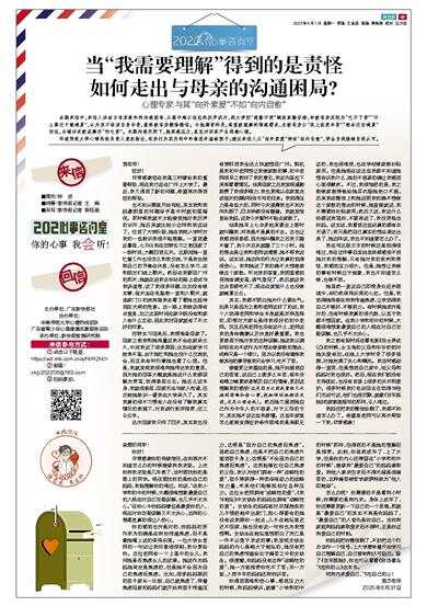 心理专家:与其“向外索爱”不如“向内自愈” 本期来信中,来信人详述与母亲数年的沟通困局:从高中难以适应的厉声训斥,到大学因“通勤不便”婉拒家教安排,却被母亲定性为“吃不了苦”“什么都没干就
