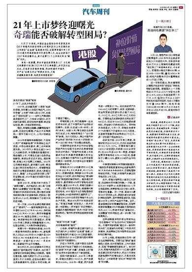 21年上市梦终迎曙光 奇瑞能否破解转型困局?