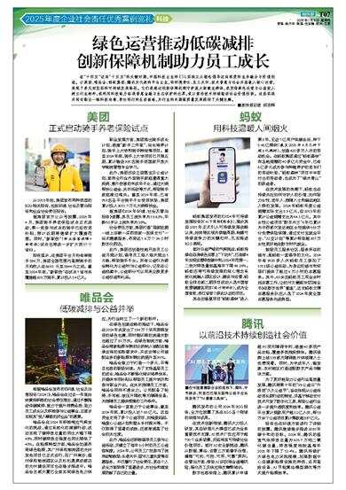在“十四五”迈向“十五五”的关键时期,中国科技企业的ESG实践正从理念倡导迈向深度的业务融合与价值创造。以美团、唯品会、蚂蚁集团、腾讯为代表的平台企业,将环境责任、员工关怀、技术普惠与社会共益嵌