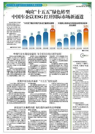 响应“十五五”绿色转型 中国车企以ESG打开国际市场新通道