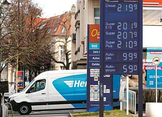 ■3月9日,在德国首都柏林,一辆货车驶出加油站。 自美国和以色列2月28日对伊朗发动军事打击以来,国际能源市场价格波动加剧,导致德国国内零售油价显著上涨。新华社发 |