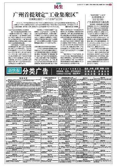 各集聚区确定3—5个主导产业方向 3月10日,广州市政府新闻办召开《广州市工业集聚区划定及工业产业区块修编方案》新闻发布会。会上透露,《广州市工业集聚区划定及工业产业区块修编方案》(下称《