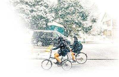 日本中小学生上学,必须穿校服。于是就出现了下雨天、大雪天,一群孩子光着腿背着书包上学的风景。