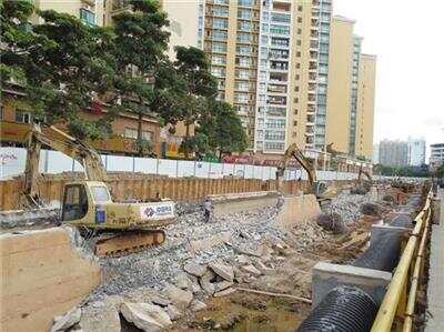 宝安区治水提质工程工地,工人在争分夺秒施工