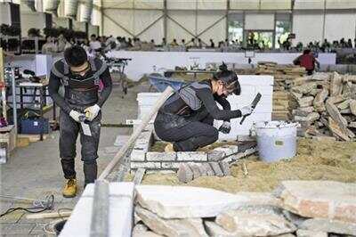 参赛选手在砌筑等项目各显其能 羊城晚报记者 周巍 摄