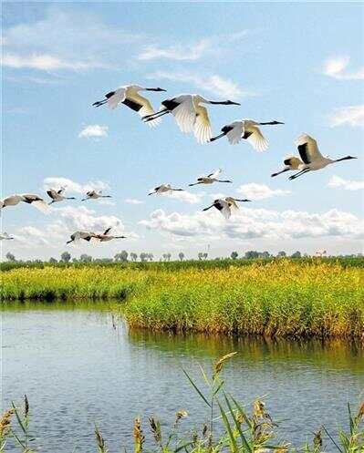 总面积达21万公顷的保护区有着风光绮丽的湿地景观,由于水草丰茂,沼泽众多,这里的野生丹顶鹤达400余只,占世界总量的1/4。以丹顶鹤为首,湿地内栖居着150多种鸟类。每天两场的丹顶鹤野化驯飞表演场面壮观。
