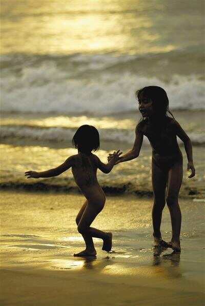 印尼巴厘岛,小孩子在海滩游玩 图/新华社