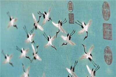 耗时三年完成的苏绣作品《簪花仕女图》局部,画中仕女发丝清晰可数,面若粉白桃花。还有《瑞鹤图》局部(原作为宋代赵佶所作)、《虢国夫人游春图》局部(原画为唐代张萱所作)等精致苏绣作品也令人惊艳。其中《虢国夫人游春图》局部绣品耗费了数位绣工7年的时间才绣制完工,用丝线绣成的马匹鬃毛闪闪发亮,活灵活现。王勤在解说自己的作品时称,这些作品中,有些是以一根原丝线被劈成1/32份,再进行创作的,正是丝线足够精细才保证了绣品的精致。 (新华社 杨磊 文/图)