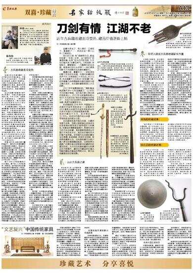 他们的江湖,有“银鞍照白马、飒沓如流星”、“仗剑一长笑,出门游四方”的潇洒快意,也有“宝光闪闪惊四座,九天白日暗无色”的豪迈英气。刀枪剑戟、斧钺钩叉、鞭锏锤挝……闪着寒光的古兵器,都是他们的心头好物——他们便是沉醉于刀光剑影的古兵器收藏者们。