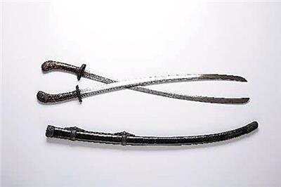 ▲明代剪水双刀 此刀为明代官造制式合璧双刀,全长90余厘米。锻造方式为包钢烧刃造,钢质精纯清亮,刀姿颀长线条流畅,能完好保存至今的明代双刀殊为难得 (林海藏品)