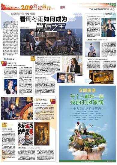 羊城晚报记者 龚卫锋在《大江大河》《江河水》等反映改革开放40年的精品剧,为2018年的国产剧画下一个句号之后,2019年的“开年剧”一晃就来了。2018年12月28日,浙江卫视播出了由唐嫣主演的一部“准开年剧”《格子间女人》;2019年1月5日,东方卫视、北京卫视将播出由罗晋、周冬雨主演的《幕后之王》——两部剧正式拉开新一年各大卫视收视鏖战的序幕。去年的职场剧大多被批“披着职业外衣谈恋爱”,这两部剧会不会带来一股时尚职场剧的清新之风,令不少观众期待。此外,易烊千玺、黄子韬、张新成等年轻演员领衔的《艳势番之新青年》《大宋少年志》则将带来一阵“青春风”。