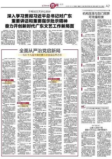 李希强调,要坚持以习近平新时代中国特色社会主义思想为指导,深入贯彻落实习近平总书记关于宣传思想文化工作的重要论述,努力开创新时代广东文艺工作新局面。一要深入推进文化强省建设,实施好文艺院团振兴提升计划,保护发展好岭南戏剧、广东美术、广东音乐等文化精粹,树立精品意识,打造中国风骨、广东特色的文艺精品,推动文艺事业繁荣发展。二要加强文艺人才培养和队伍建设,扎实做好青年文艺人才培育工作,着力培养德艺双馨的名家大师,造就一批有影响的文艺领军人物,打造一支高水平高素质的文艺人才队伍。三要加强党委对文艺工作的领导,广东各级党委、政府要把文艺工作纳入重要议事日程,深化改革、完善政策、健全体制,为文化大繁荣大发展营造良好环境。